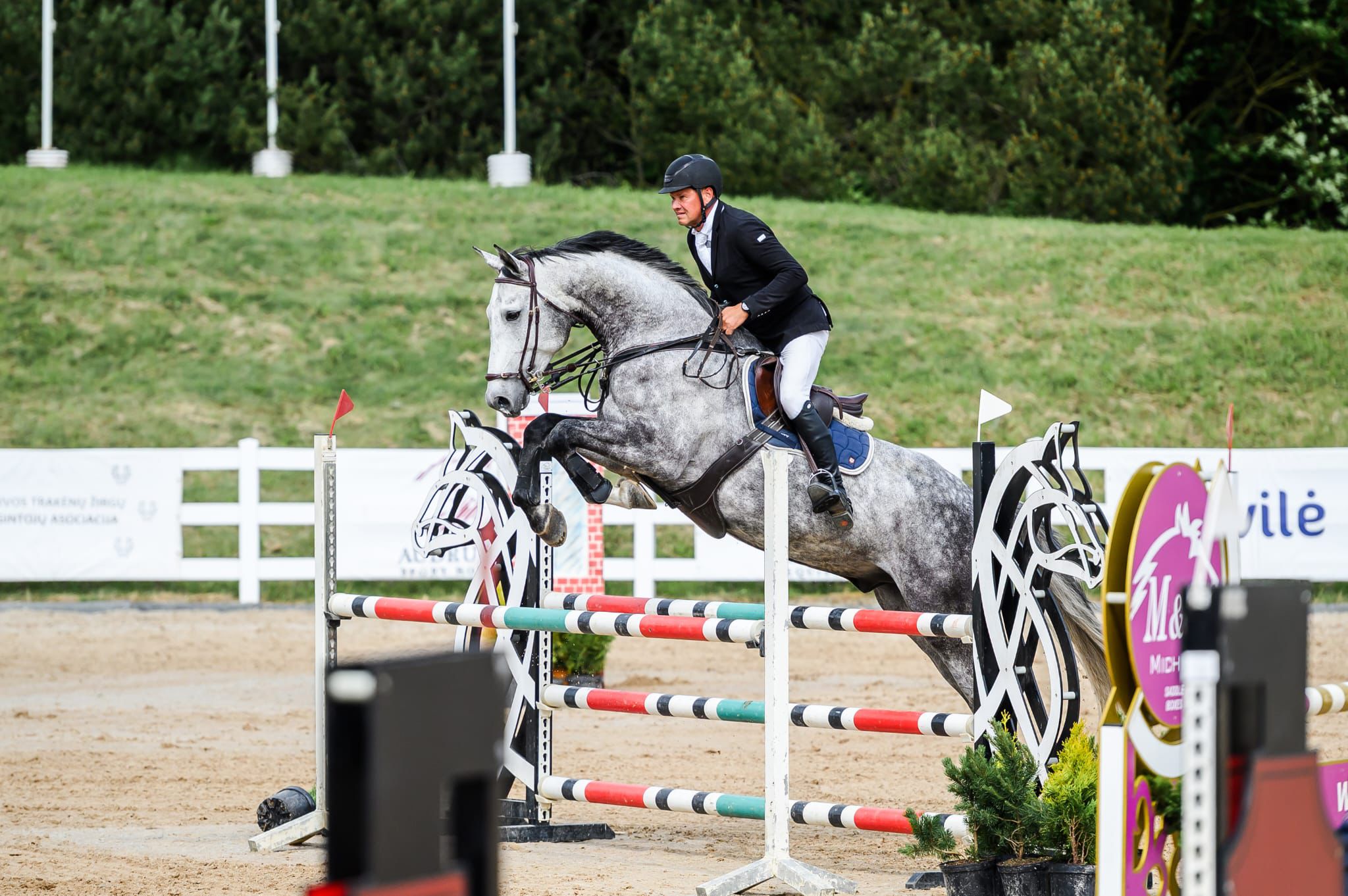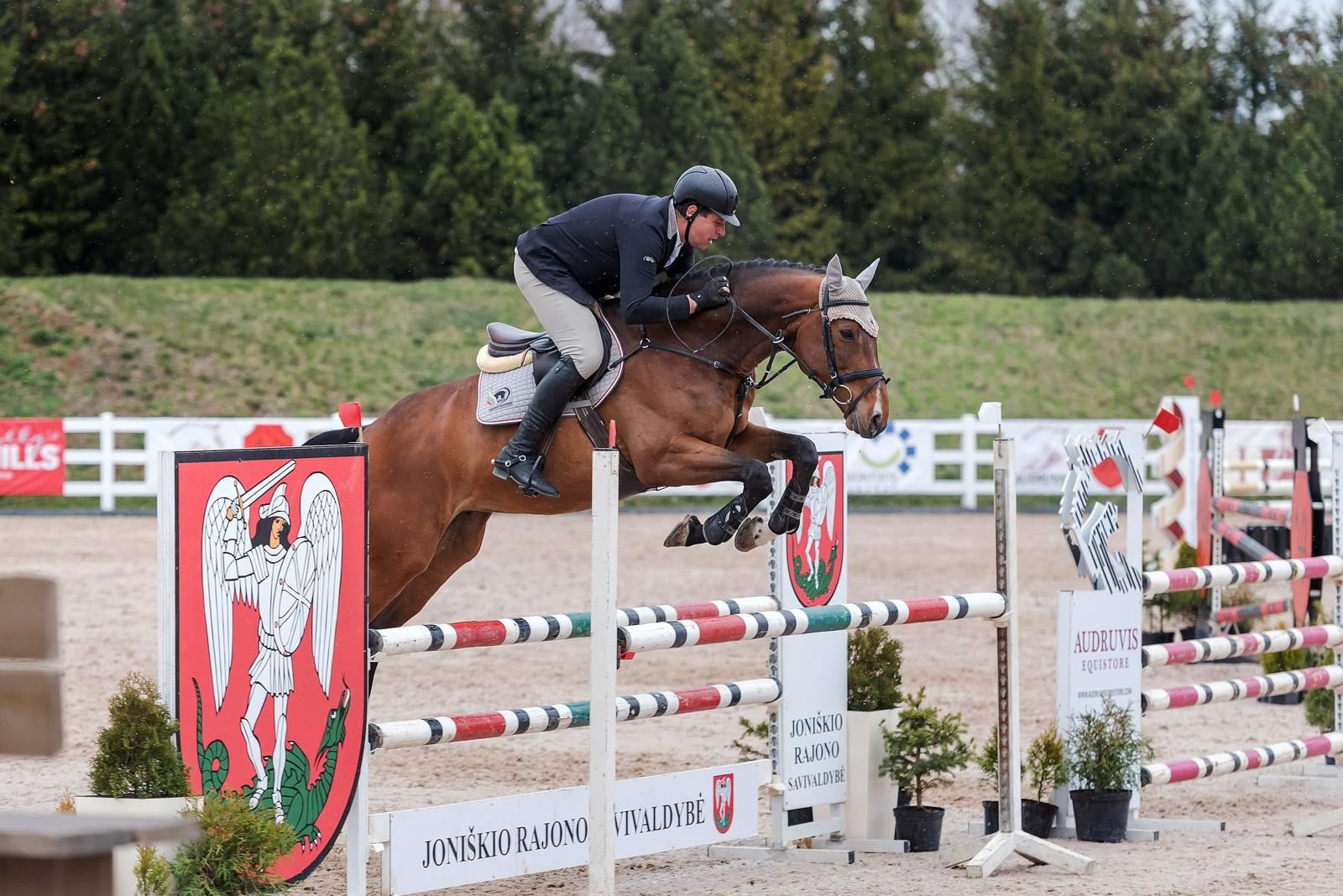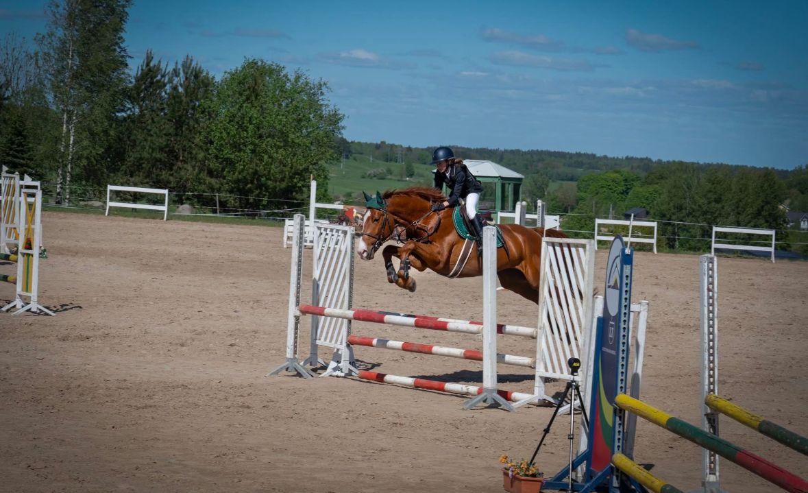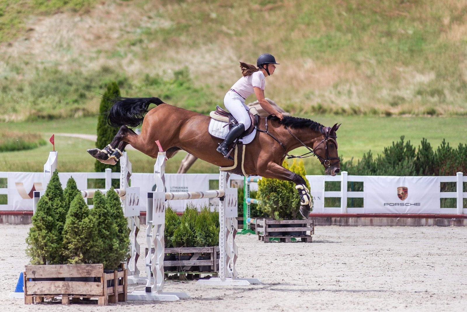 hyvin hyppäävä ruuna toimii Liettuan riding school